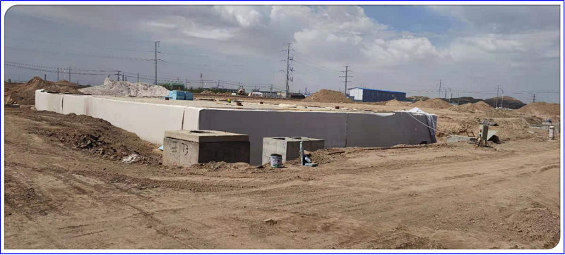 废水处置惩罚站由初期雨水池(有用容积490m?)和事故水池(有用容积1715m?)组成。池壁、底板、顶板通过三层长丝无纺土工布,两层土HDPE土工膜做防腐防渗处置惩罚。水池注水至雨水池和事故水池毗连处,沉降视察一周,池主体无渗漏后用潜水泵抽水放至现场。水池闭水历程严酷凭证闭水计划举行,并制订了防水现场应急处置惩罚步伐。