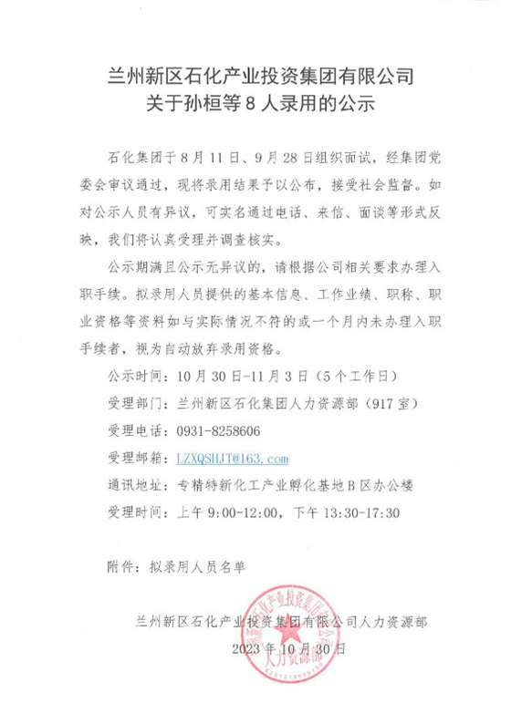 关于孙桓等8人任命的公示