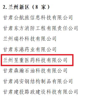 克日,省科技厅宣布2022年度第二批甘肃省科技立异型企业名单,兰州新区专精特新化工科技有限公司工业孵化器内的入孵企业兰州昱重医药科技有限公司乐成上榜。此次全省共有163家企业通过认定,其中兰州新区8家企业。
